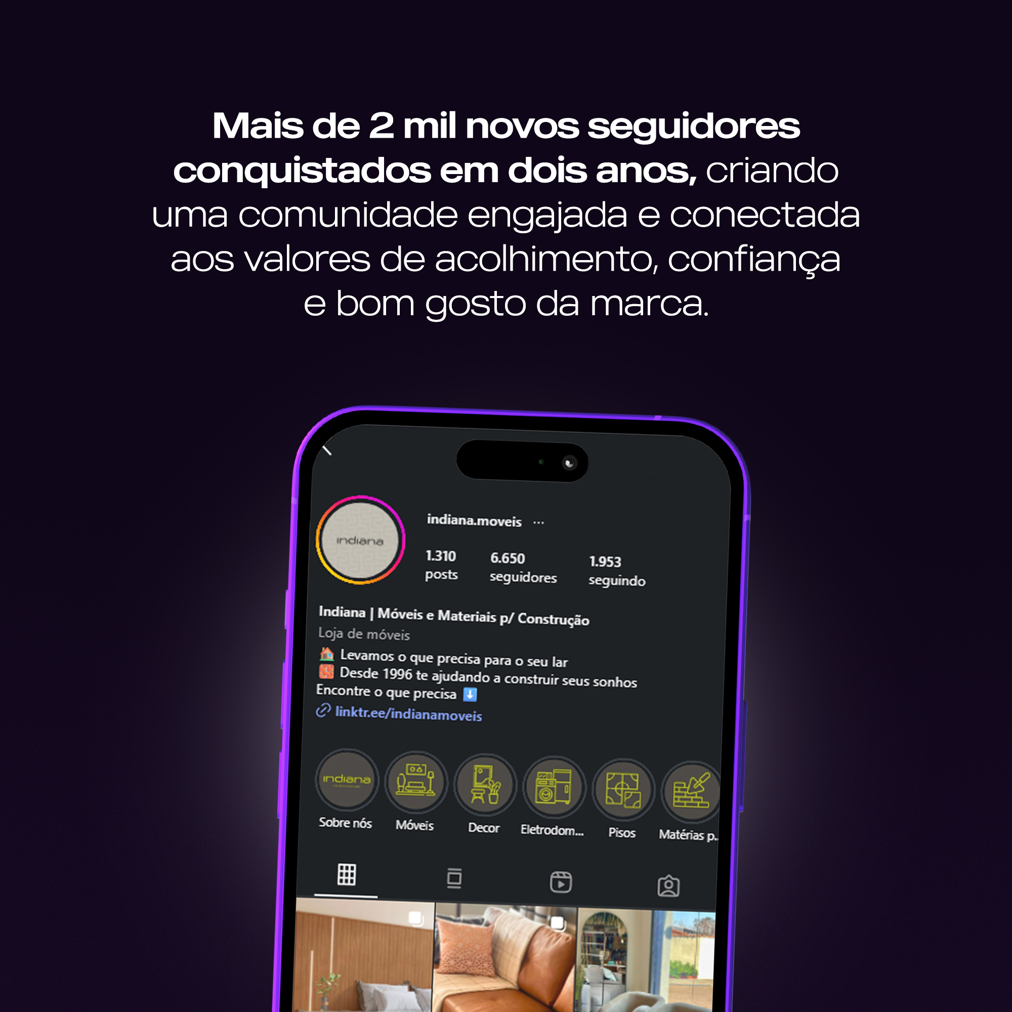 Em 2025, a marca deu um passo além e criou uma comunidade no WhatsApp, oferecendo conteúdos exclusivos e ofertas personalizadas — um movimento que aumentou o relacionamento e as vendas diárias. Hoje, quando o público de Serrana pensa em móveis modernos e design elegante, pensa na Indiana.